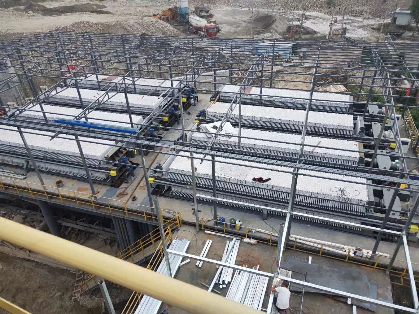 1. 壓緊壓濾機?! ⊙h開始的步就是壓緊壓濾機。壓濾機的濾板是可移動的,通過油缸活塞桿的推動,壓濾機濾板逐一靠緊排列。油缸壓緊壓力由液壓系統提供和控制,在掉壓時可自動補壓(稱為自動保壓壓濾機),保證油缸的壓緊力。油缸壓緊力是壓濾機重要的參數指標,足夠的壓緊力是保證不漏料、不噴漿的前提,是壓濾機脫水性能的基礎。 ......
